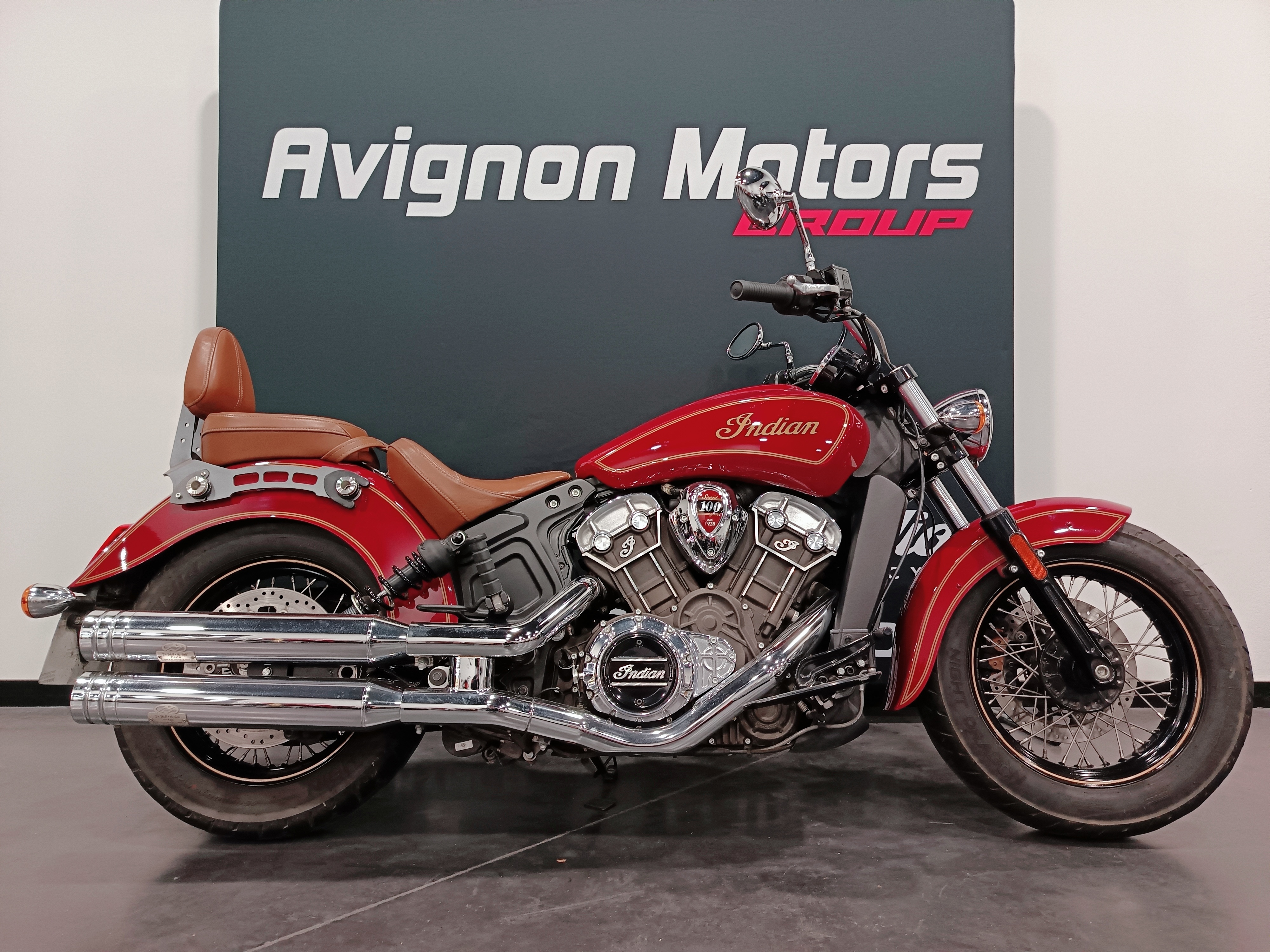 Une Indian SCOUT 100EME ANNIVERSAIRE totalisant 16985km.
