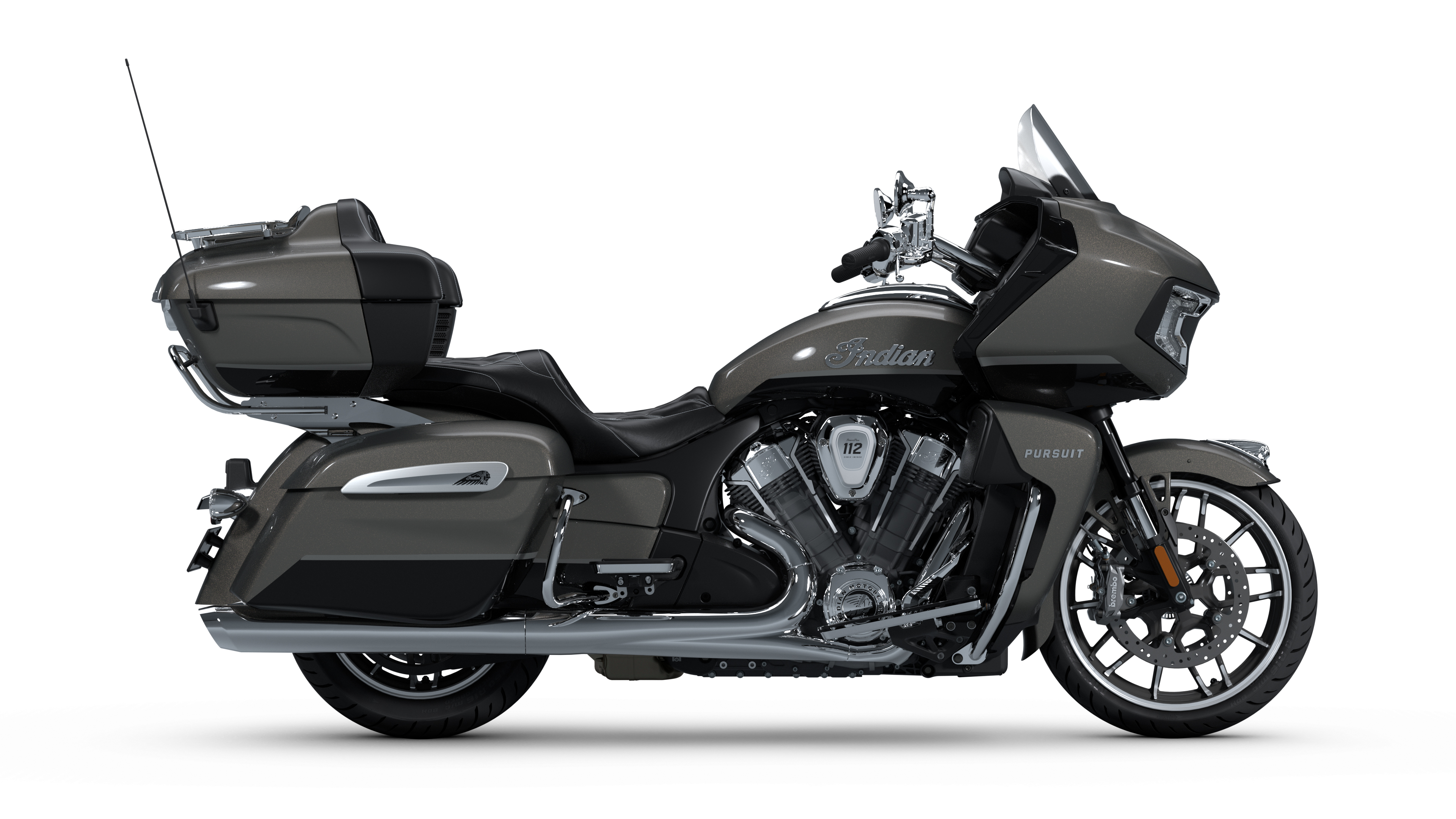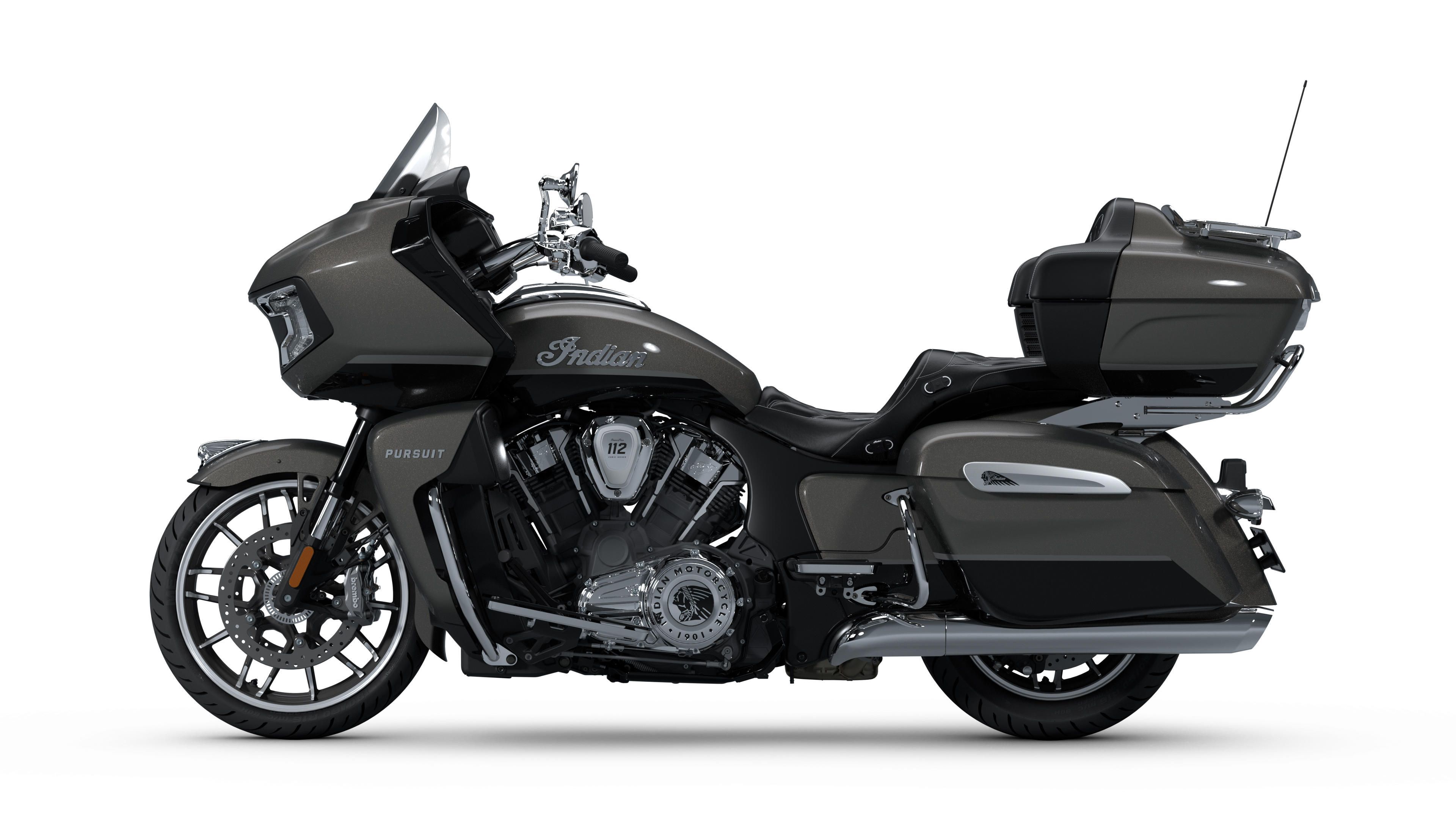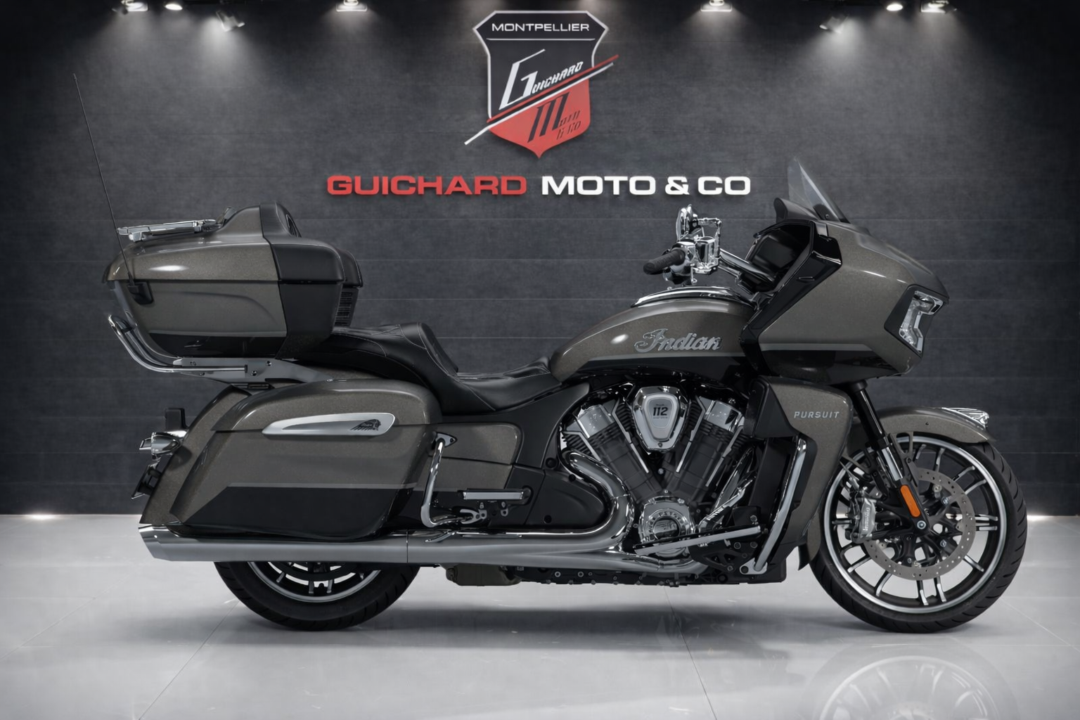 Marque : INDIAN MOTORCYCLE Modèle : PURSUIT LIMITED (Génération 2025) Cylindrée : 1834 cm³ (PowerPlus 112 ci) Année : 2025 Couleur : Heavy Metal & Black Metallic Puissance : 122 cv (181,4 Nm de couple)