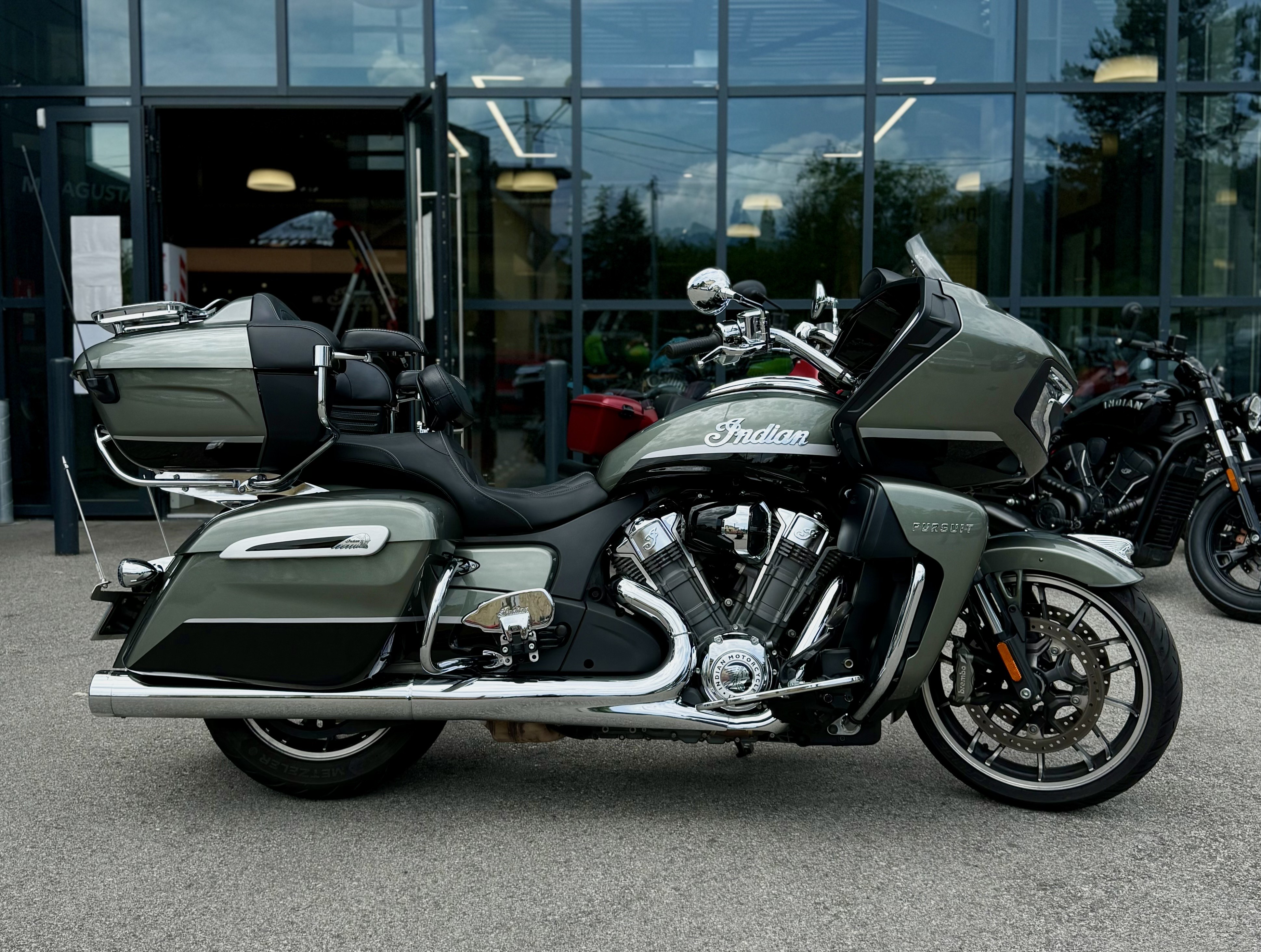 Votre concession INDIAN MOTORCYCLE d’Annecy vous propose à la vente cette magnifique Indian Pursuit Alumina Jade de 2022, disponible en occasion