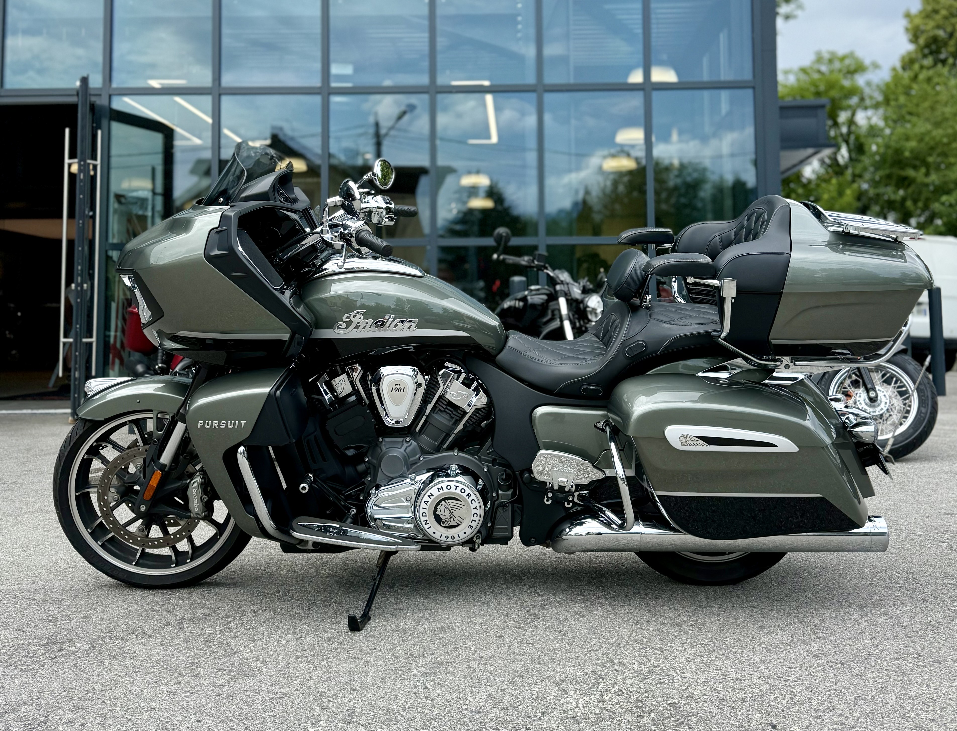 Acquérir une moto d’occasion dans le réseau officiel INDIAN MOTORCYCLE est d’ores et déjà un gage de sérieux et de sérénité. Grâce au label occasion ’INDIAN APPROVED’, faites l’acquisition d’une moto révisée qui a fait l’objet de nombreux points de contrôle par un professionnel spécialisé. N’hésitez pas à demander conseil à votre concessionnaire INDIAN MOTORCYCLE. Votre concession INDIAN MOTORCYCLE d’Annecy vous propose à la vente cette magnifique Indian Pursuit Alumina Jade de 2022, disponible en occasion